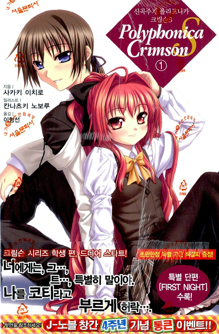 [신곡주계 폴리포니카 크림슨] 시리즈 학생편. 12년 전, 고아원 옥상에서 소년은 진홍빛 머리카락의 정령과 만났다. 그리고 그는 소원했다. 계속 옆에 있어주기를. 시간은 흘러, 소년.타타라 폴론은 톨바스 신곡학원에서 공부하는 학생이 돼 있었는데. “그런 신곡이 아니다! 나는 그런 지루한 음의 나열을 듣기 위해 너와 계약한 것이 아니라고!!” 드디어 재회하고 함께 살기 시작한 두 사람이지만, 아무리 해도 폴론은 코티카르테에게 신곡을 연주해줄 수가 없었다. 마침내 그녀가 나버리는데...
