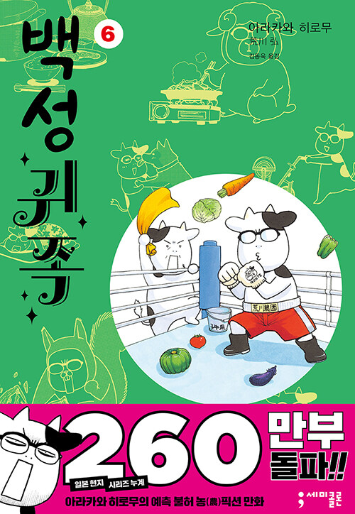 아라카와 히로무가 전하는 특제 농업★버라이어티 제6탄. 이번 권에서도 그녀는 마르지 않는 샘처럼 농가의 새로운 (비)상식을 알려준다. 근육 빵빵한 헬스인이라도 단련할 수 없는 농사 근육의 실체, 한없이 순한 눈망울로 유명한 젖소들 사이에서 거침없이 벌어지는 집단 괴롭힘, 농업 고교생도 피할 수 없는 진로 결정, 역대 아라카와 농원의 멍멍이들과 이 시리즈의 숨은 주인공(?)이었던 아버지의 ‘메카 버전’ 등장 등 범상치 않은 아라카와식 체험 에피소드가 여전히 가득하다. 그뿐만 아니라 이번에는 아라카와 농원을 뒤흔드는 중대한 결단까지 있다는데?! 웃다 보면 어느새 농가의 상식이 쑥쑥 늘어나는 농업 버라이어티 만화의 세계로 빠져 보자!
