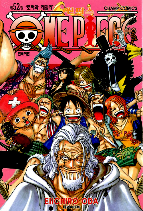 『원피스』 제52권 <로저와 레일리>. 천룡인을 구타해 해군에 쫓기게 된 밀짚모자 일당! 잇달아 밀려드는 해군 전력에 맞서느라, 휘말린 루키들도 대고전! 설상가상으로 대장 '키자루'도 상륙, 섬은 불바다로 화한다…. 최고의 보물 '원피스'를 둘러싼 해양 액션 로망!!