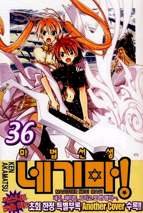 Ken Akamatsu 만화 『마법선생 네기마』 제36권. 본 작품은 10살짜리 꼬마 마법사 네기 스프링필드가 마호라 학원의 영어 선생님으로 부임해 오면서 31명의 미소녀들의 담임이 되면서 펼쳐지는 이야기를 그려낸 만화이다. 순진무구한 네기 스프링필드의 표정과 행동이 특징적이다.